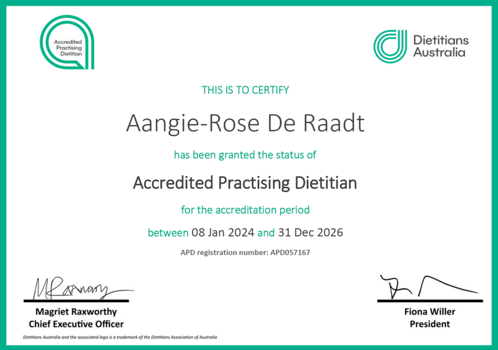 Rebates are available under the GP Chronic Management Plan & Eating Disorder Treatment and Management Plan which can be organised with your GP if you are eligible. Providing comprehensive nutrition counselling as a Dietitian Aangie has a Medicare provider number and can take on referrals for Dietetic appointments from your GP. Her nutrition advice is not just about dieting; it is about embracing a healthier balanced lifestyle.